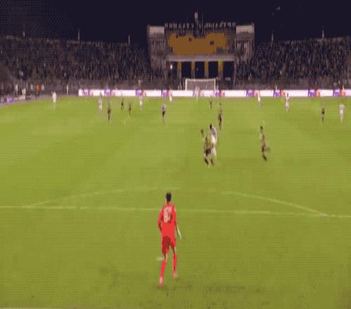 15分钟过后,皇马夺回了应有的优势,第23分钟,凯拉特后卫大脚解围,皮球踢到中间,另一名后卫头球顶向球门方向,马斯坦托诺形成单刀,门将出击将其放倒。