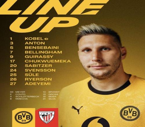 北京时间10月2日03:00,欧冠 联赛阶段 第2轮,多特蒙德主场迎战毕尔巴鄂竞技,赛前双方球队首发名单公布如下: