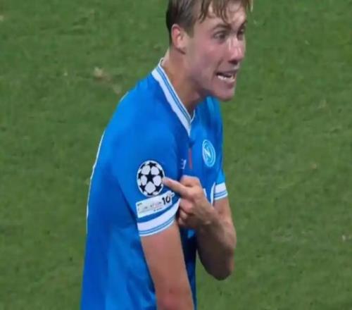 于是乎,中场没有改变的曼联,7场1球的谢什科,与德布劳内两度连线的霍伊伦,世界名画的要素已经集齐。而霍伊伦两次进球后分别指向了那不勒斯队徽,以及衣袖上的欧冠标志,稍微解读一下就是:感谢曼联租借我到那不勒斯,我能在欧冠进球了。