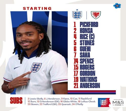 雷速体育10月10日报道宣称 今日的国际友谊赛中,英格兰将对阵威尔士。赛前,英格兰国家队公布首发名单。