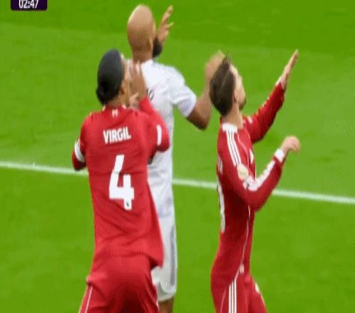 然而,这也是一个存在巨大争议的进球。关键在于,在争抢头球时,范戴克不慎肘击麦克阿利斯特,导致后者头部受伤后倒地。看到麦克阿利斯特受伤倒地,范戴克反应稍慢,让姆贝莫得到了在小禁区起脚射门的机会。