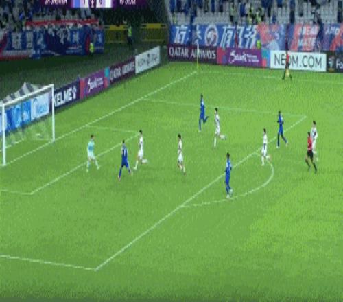 第57分钟,特谢拉传中,阿苏埃高高跃起力压对手头球破门,申花1-0领先首尔。