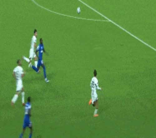 第39分钟,马纳法左路兜射,皮球擦柱而出