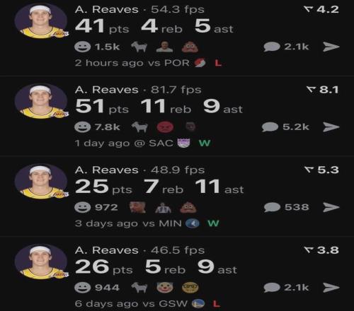 再据统计,本赛季至今里夫斯出战四场比赛,总共狂轰143分,追平亚历山大并列联盟总得分第一,NBA史上最强落选秀当之无愧。