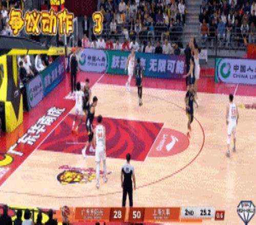 1分钟后陈家政继续紧逼贴身防守古德温,古德温愤怒地推开了陈家政的手臂,之后在摆脱过程中古德温右手发力将陈家政推倒在地,裁判吹了古德温犯规。