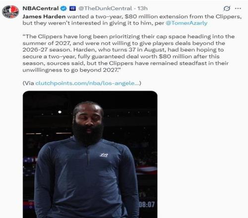 这笔交易的背景与哈登的合同状况密切相关,他下赛季拥有价值4230万美元的球员选项,但其中仅有1330万美元是受保障的,这种合同结构给了球队操作灵活性,也被认为是近期哈登因个人原因连续缺阵的可能因素之一。